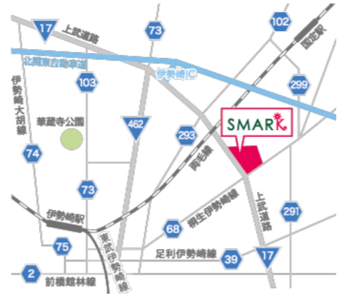 所在地/群馬県伊勢崎市西小保方町368 スマーク伊勢崎3階