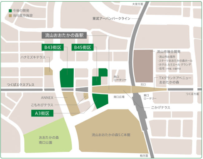 〈「流山おおたかの森駅」周辺エリア開発マップ〉