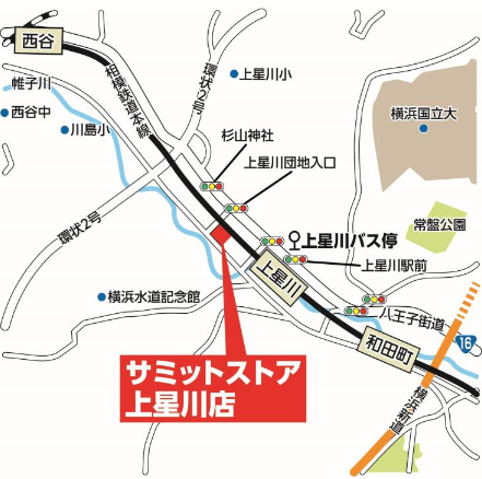 最寄りの駅は、南側0.3kmに相鉄本線「上星川駅」があり、店舗北西から南東へ相鉄本線、八王子街道が通っており、相鉄線と帷子川の間への出店だ。