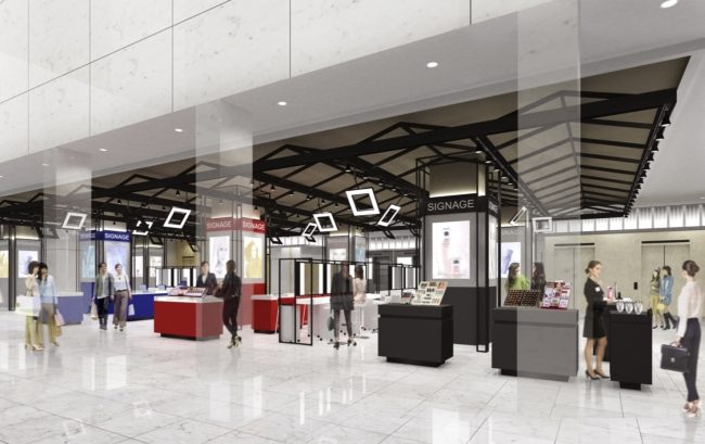 メイクゾーン、スキンケアゾーン、ライフスタイルコスメゾーン、美容機器ゾーンの4つのゾーン構成とし、顧客のトータルビューティーを提案する。