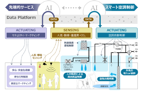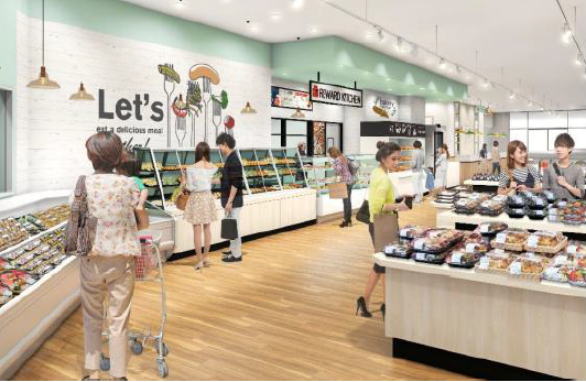 施設面では、環境に配慮した “スマートな” 店舗を目指す。エネルギーの効率的な利用を目的に、スーパーマーケット分野では世界初の「人流等のデータとAIを活用した空調エネルギー削減システム」の実証実験を開始する。また、一部の弁当容器やカトラリーを紙や木製に切り替え、環境配慮に取り組む。