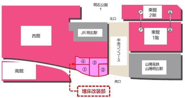 改装では、明石駅南側のバスロータリーに面する、ピオレ明石西館の南東部分を増床する。