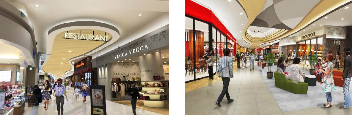 平面駐車場として利用していた建物の東側に増床棟を新設する。「ミライを紡ぐ次世代モールへ」をコンセプトに、全体の約50%をリニューアルする。