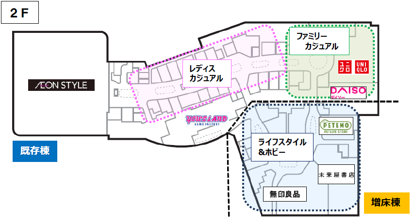 〈イオンモール高崎のイメージ:囲み部分が増床棟〉
