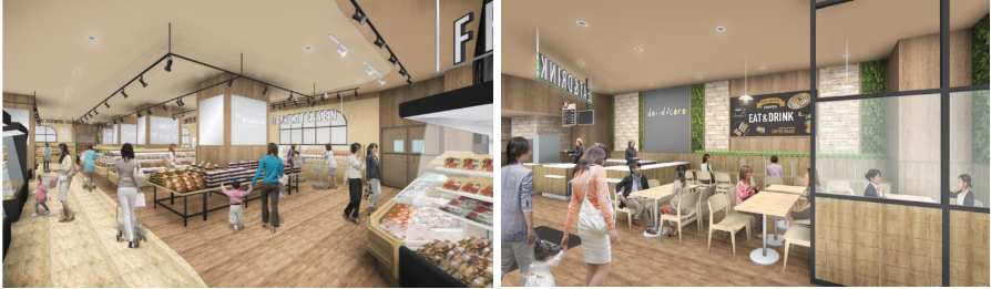 インストアベーカリー「ディーズベーカリー」、24席のイートインコーナー設置など、日常使いのスーパーマーケットを目指す。