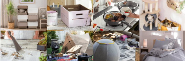 Style Factory では、「調理器具」「文房具」「寝具」のような単一のキーワードに基づいたレイアウトではなく、ライフスタイルのテーマごとにアイテムを展開する。Style Factory が独自に行った市場調査や分析をもとに、消費者ニーズに沿うメインテーマと関連するサブテーマとを設定し、複数のキーワードから構成されるレイアウトを実現する。