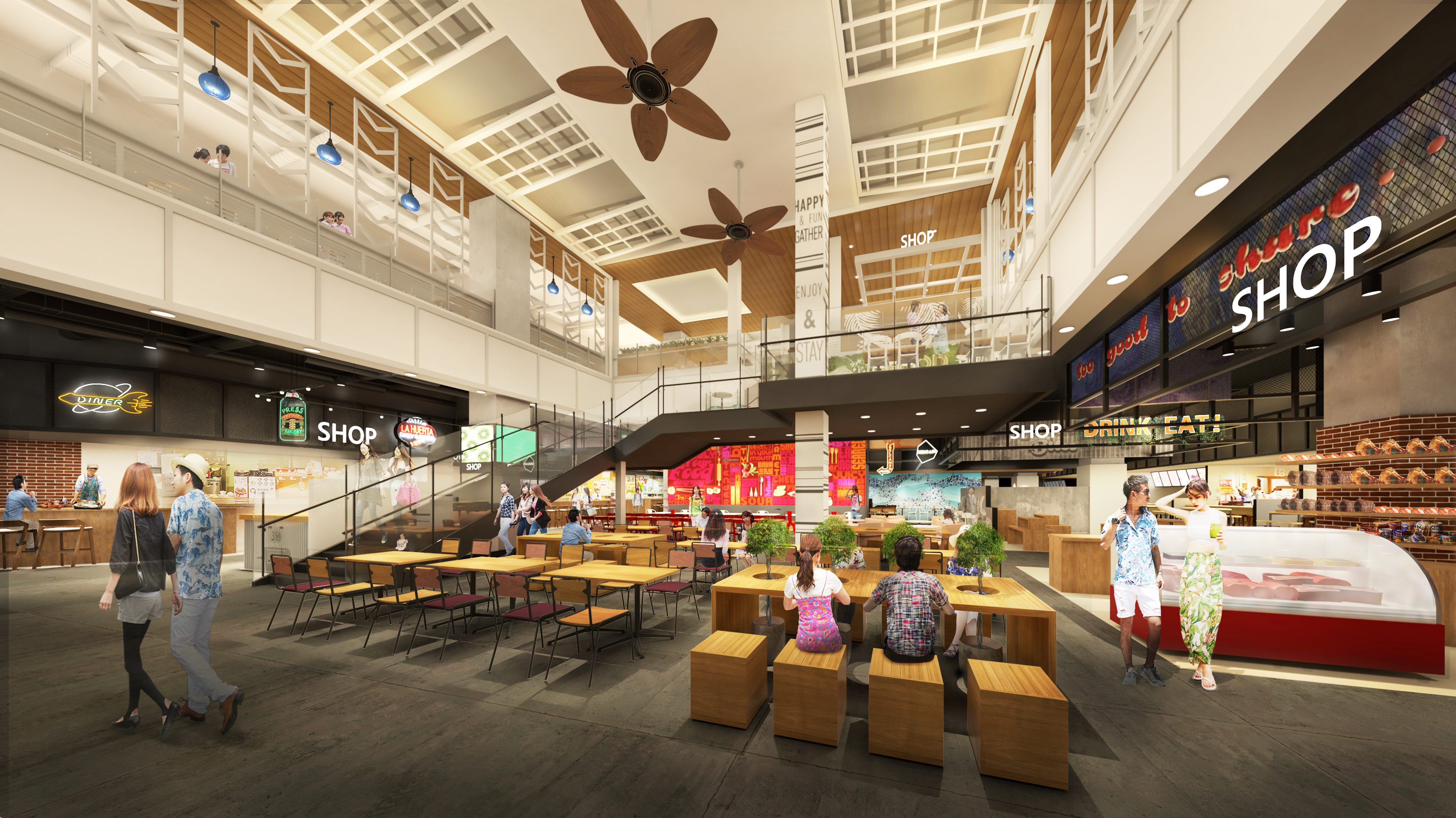 また、慶良間諸島・東シナ海を眼下に望む施設屋上(4階)には、沖縄の海でとれた鮮魚や沖縄アグー豚、島野菜などをバーベキューで楽しむことができるルーフトップバーを備えた「STEM RESORT」(2020年7月開業予定)、1階フードゾーンには「イオンスタイル豊崎」を核に、開放的なフードホール・マルシェを設ける。