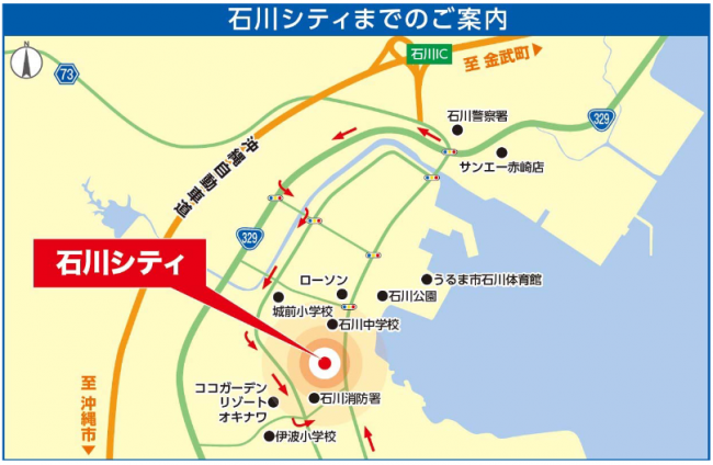 うるま市は沖縄本島中部の東海岸に位置し、沖縄県内で3番目に人口が多い。出店エリアの石川地区は、国道329号線が通り、さらに沖縄自動車道のインターチェンジへのアクセスも良い。交通量も多いことから広域からの集客を目指す。