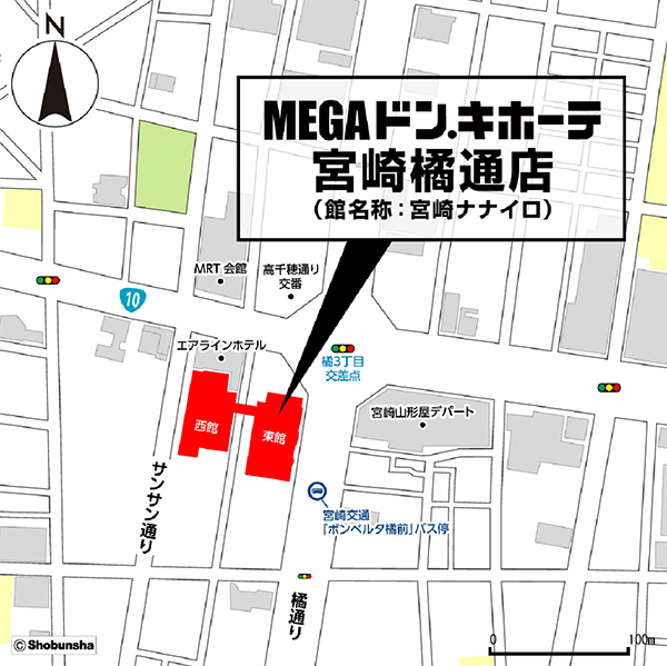 〈MEGAドン・キホーテ 宮崎橘通店:周辺地図〉
