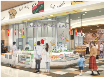 ⻘果売場は市場感を演出する。店内加工の切りたてサラダを提供する「ラ サラダ・ラボ」、旬のフルーツとクリームを挟んだ「フルーツサンドウィッチ」、砂糖や人工甘味料を使用しないフレッシュジュース「ジュディフルラボ」、テーブルフラワーを提案する花売場「ハナミライ」などのコーナーを展開する。また30軒以上の地元生産者とコラボした地場野菜コーナーで地産地消を進める。