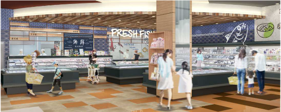同店は商業施設内のスーパーマーケットとして、生鮮食品は「鮮度・品揃え・おいしさ」を、一般食品は「健康・楽しさ・発見・価格」をキーワードにして、店内加工商品や産地や原料、製法や味にこだわり、健康と安全安心を意識した商品を品揃えする。逆に生活関連品は、品目を絞ってコンパクトに展開する。