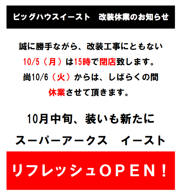 ラルズnews|ビッグハウス転換し「スーパーアークスイースト」10/16開業