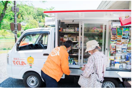 花巻市を中心としたエリアを平日週5日、加工食品、生鮮品、日用品など約400品目1200点を専用車に積み込んで巡回販売する。