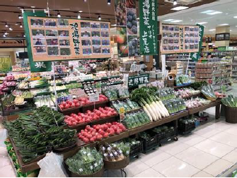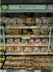 ■地場野菜コーナー(左)と大豆ミートコーナー