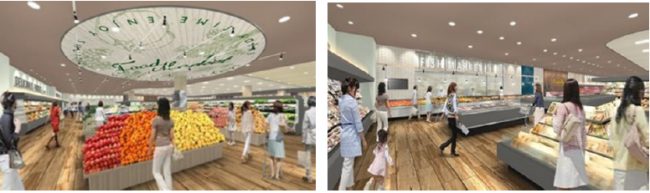 コロナ禍のなか、感染防止のために店舗入口周辺にはサニテーションカウンター(手洗い、消毒)を設ける。お客用には非接触検温システムを導入する。自動消毒スタンドの設置・光触媒コーティングによる買物カゴやカートの抗菌・抗ウイルス加工など、防疫に万全を期す。