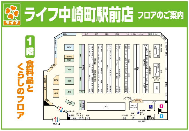 (株)ライフコーポレーション(東京本社:東京都台東区、大阪本社:大阪市淀川区、岩崎高治社長)は11月11日(水)、大阪市北区に「ライフ中崎町駅前店」をオープンする。売場面積は270坪。300坪型の小型店である。