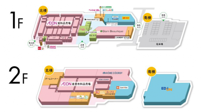 またイオンの専門ショップを導入する。H&BC売場には美と健康をトータルサポートする「グラムビューティーク」、生活雑貨売場には「ホームコーディ」、衣料品売場には「インナー&カジュアル」「スポージアム」だ。さらにFC事業の6号店となる「FOOD BOAT Café(フードボートカフェ)原店」も出店する。