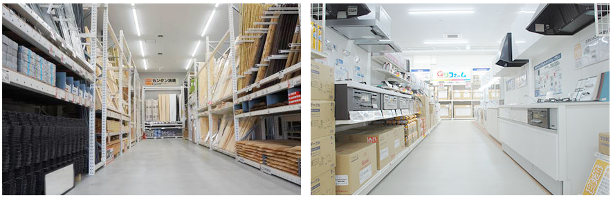 売場面積770坪の神栖土合店では、システムキッチン、ビルトインコンロ、洗面化粧台、トイレなどの住宅設備機器売場を新たに設けた。また、近隣のパワー鹿嶋店と連携してシステムキッチンやシステムバスへの交換といった本格的なリフォーム工事にも対応していく。