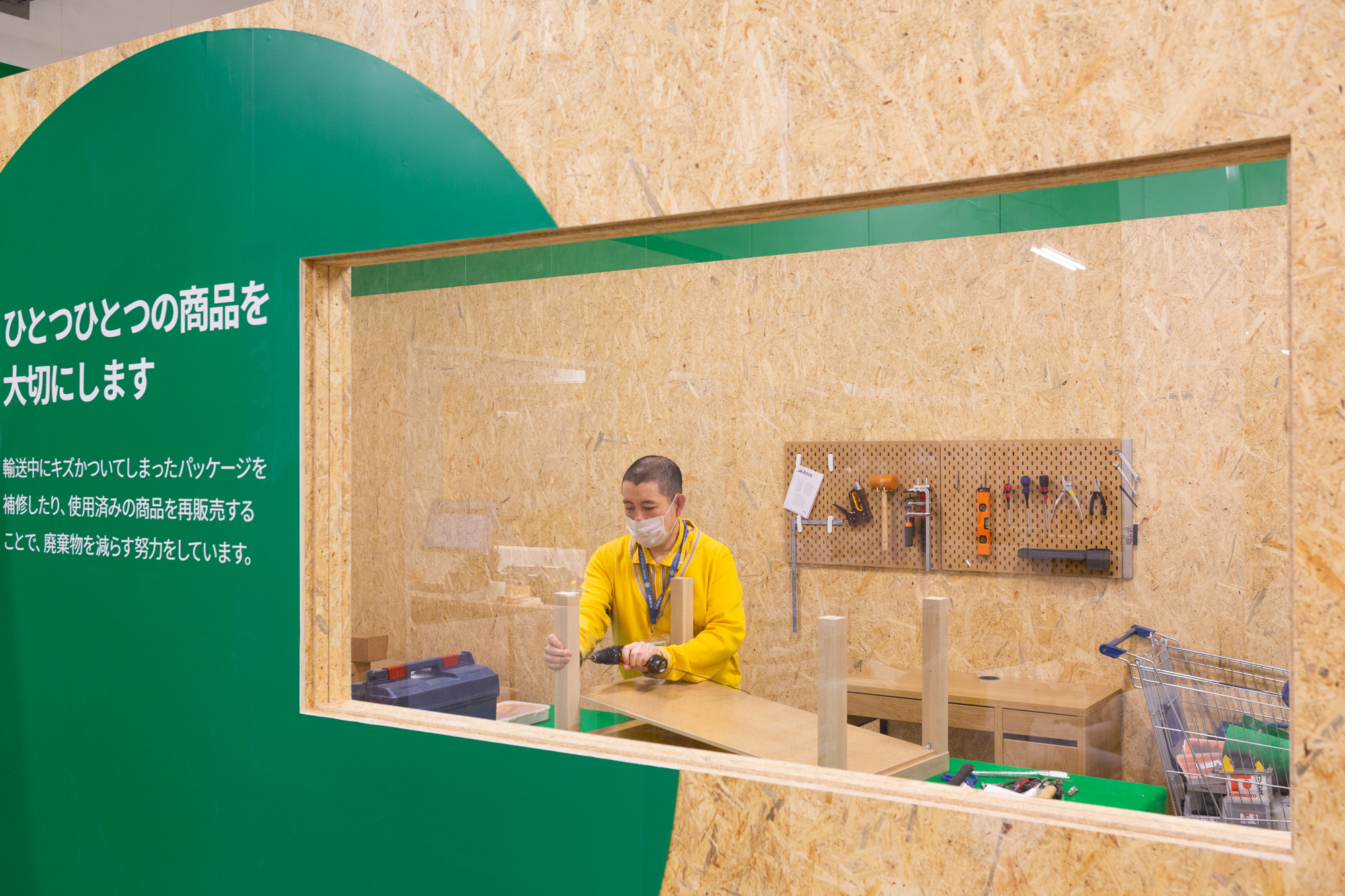 IKEA港北では、コワーカーによる家具の組み立てを見学できるコーナーや、今後、商品のメンテナンス方法などについてのワークショップ「Learn & Share area」を設ける計画だ。