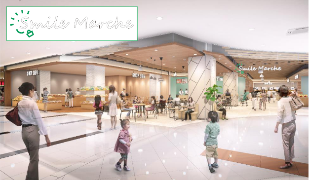 グランドリニューアルオープンでは、「食」をテーマにしたゾーン「Smile Marche」を新設する。グランドリニューアルオープンまでに新たに6店舗がオープンする。四国初の「高級食パン専門店嵜本 ベーカリーカフェ」や、和カフェ「nana’s green tea」、ベーカーリーショップ「ハートブレッドアンティーク」、ねこ型のチーズケーキ専門店「ねこねこチーズケーキ」が出店。パブリックスペースも導入し、食のエンターテイメント空間として充実させる。レストラン街「Smile Dining」もリニューアルする。さらに別棟には、アウトドアカフェ「CAMP♯365」がオープンする予定だ。