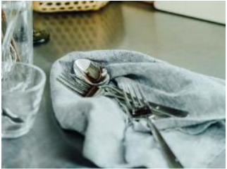 尺貫法で設計された高台のない食器、新潟県燕市製のカトラリー、オーガニックコットンタオル