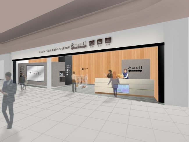 そして第4がリアル施設における「&mall」サービス拠点「&mall DESK」の拡大。リニューアルにあたり、三井ショッピングパークの公式通販サイト「&mall」で購入した商品の受け取り、試着、返品ができるサービス拠点「&mall DESK(アンドモールデスク)」を刷新。フィッティングルームは、 2ブースに増設されることにより待ち時間の削減に繋がるだけでなく、ベビーカーも十分に入れるようスペースも拡張されるため、小さなこども連れでも安心して試着ができる。「&mall DESK」中央のフリースペースでは、イベントや商品展示なども実施する。