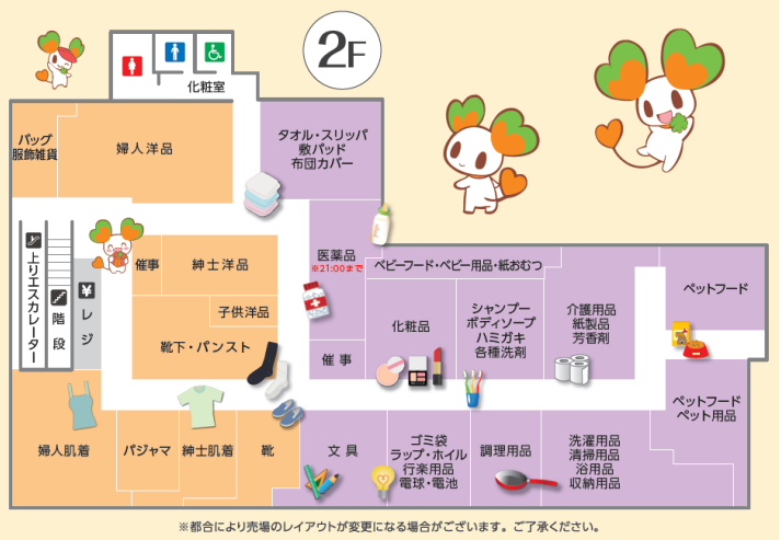 改装では内装や商品ケースを刷新した。またワンストップショッピングを実現するため2階中央にドラッグコーナーを新設した。その2階の衣料品・生活関連売場も内装を刷新。またレイアウトを変更し、買い回りしやすくした。