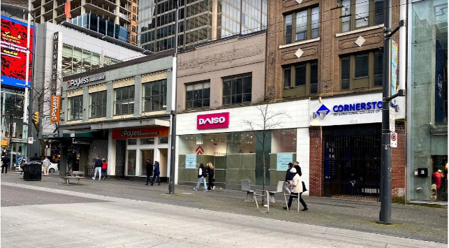 出店場所はバンクーバーの中心地ダウンタウンに位置し、バンクーバーシティーセンター駅、グランビル駅からそれぞれ徒歩2、3分と、市民や観光客で賑わうショッピングエリア。