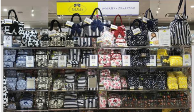 九州エリア初展開、国内1号店となるNaRaYaは1989年にタイで誕生した、ポーチやバックなどを一針一針丁寧に縫い上げる上質なハンドメイドのファブリックブランド。NaRaYaのコンセプトの1つである”豊富なバリエーションで選べる楽しさ”を感じられる、コットン素材の小物を中心に37アイテム(税込330円~2750円)を品揃えする。