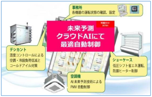 そよら新金岡には、イオングループで初めて未来予測クラウドAIによる「店内環境と省エネに配慮した空調システム」が導入される。外的・人的要素から算出される快適性評価指標(PMV)を空調制御に活用して店内環境を最適化するシステムだ。AIで空調を自動制御することで、店内の冷え過ぎや、汚れ・結露を抑制し、省力化・省エネを図る。