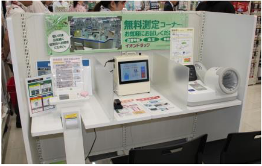 店内にはセルフチェックの各種健康測定器を設けて、来店を促していく。
