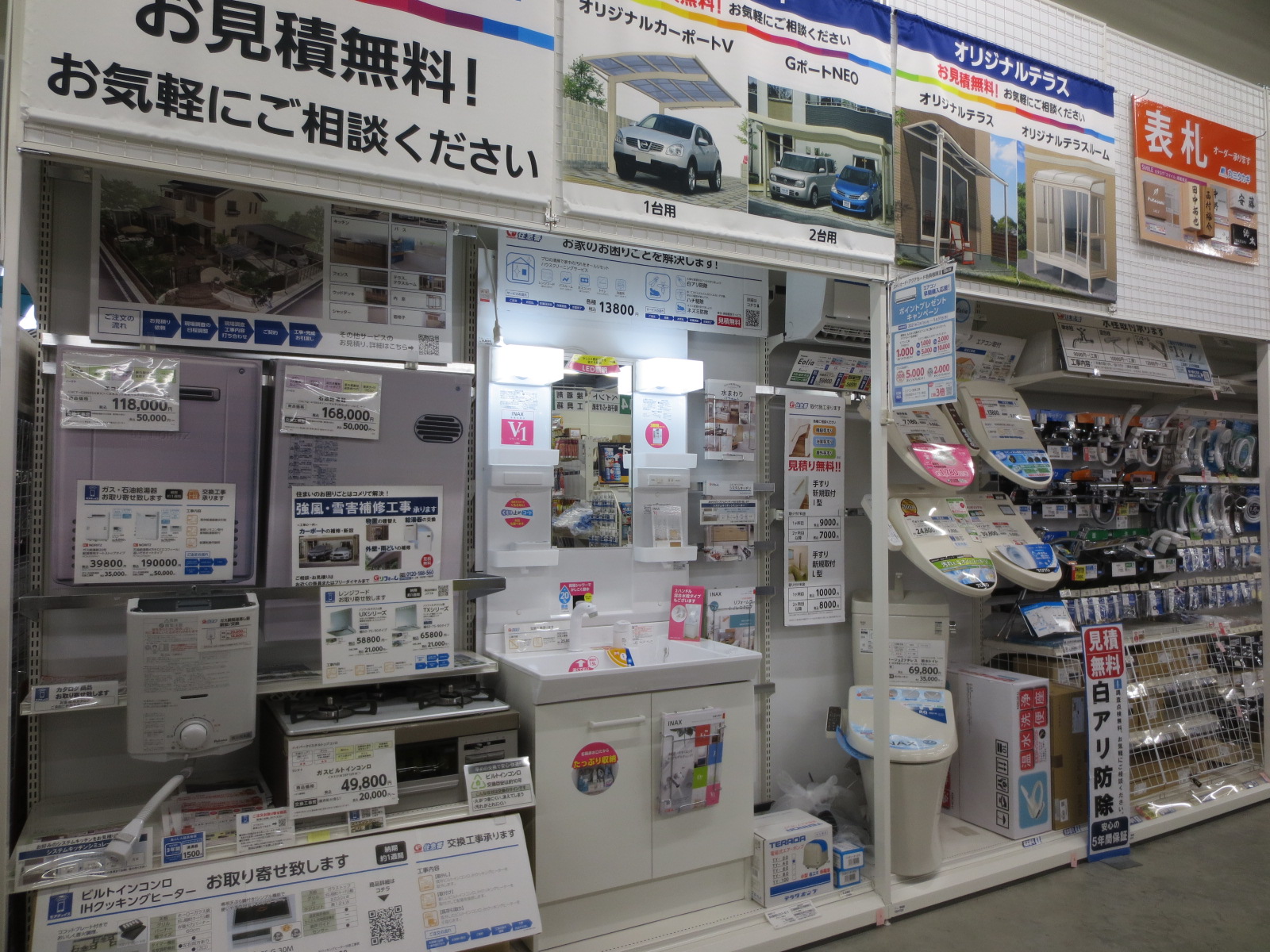 ビルトインコンロ、 洗面化粧台、 トイレ等の住宅設備機器売場では洗面化粧台やトイレの交換といった取り付け・施工サービスも行う。