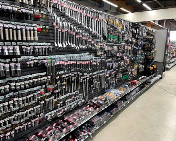 工具売場では、売場面積を約30%拡張し、電動工具と作業工具を中心に約1500点の商品を新規導入した。また、電動工具や電動工具に取り付ける先端パーツなどの作業工具を面で見せる選びやすい陳列に変更した。
