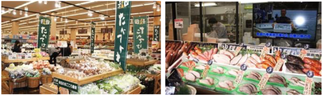 「地獲れ鮮魚」などを扱う対面鮮魚売場では、秋田港で水揚げされた生スルメイカ、男鹿市の北浦漁港・椿魚港・船川魚港などで水揚げされた真鯛や平目、さざえ、男鹿市で水揚げ・浜茹でされた「ボイル紅ずわいがに」を品揃えする。店内で加工した「魚屋の鮨」と「魚屋の焼魚」も新たに展開する。さらに、時短調理やストックにも便利な冷凍干物や冷凍切身魚、冷凍イージークッキング商品などを品揃えするフローズンフィッシュコーナーを新設する。