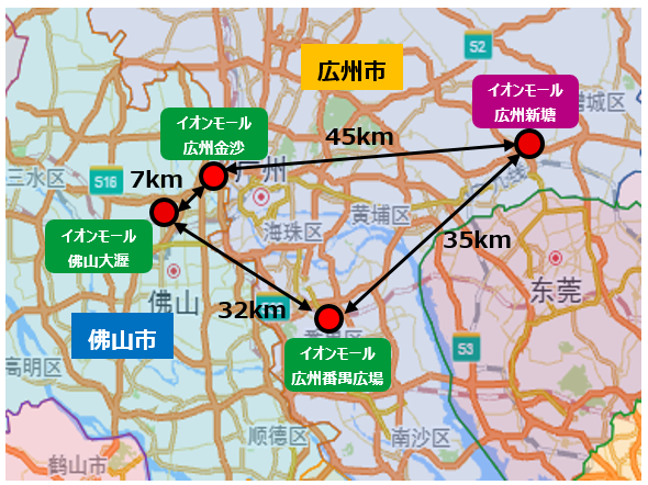 同社は2015年に広東省1号店となる「イオンモール広州番禺広場」を開業して以来、2017年には「イオンモール佛山大瀝」を、2018年には「イオンモール広州金沙」を、そして今年5月29日(土)には「イオンモール広州新塘」をオープンしし、現在広東省内で4モールを運営している。
