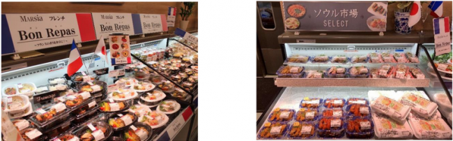惣菜コーナーでは、世界各国の料理を取り揃える。フレンチの「ボン・ルパ」、カレーの「マイルドスパイシーズ」、パスタの「スペチャーレスパーゴ」を展開する。さらに新規導入の韓国惣菜コーナーではヤンニョムチキンやチヂミ、ビビンバなどをラインアップする。