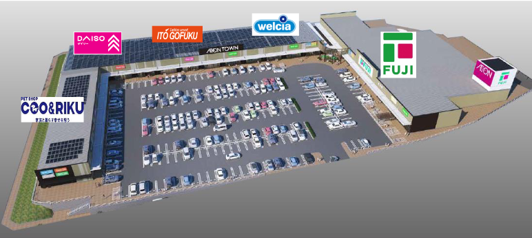 フジのほか、四国に初出店のイオン系ドラッグストア「ウエルシア」、中央市初出店の総合衣料小売業「イトウゴフク」、靴のトータルショップ「つるや」など新規に11店舗が加わり、16店舗のテナント揃えになる。また既存の「ダイソー」「眼鏡市場」も移転リニューアルする。