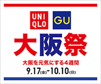 「大阪祭」は9月17日から10月10日までの期間で、大阪の大動脈といえる御堂筋線沿線にあるユニクロ、ジーユー全12店舗で開催する。参加するのは、ユニクロ店舗では心斎橋店、UNIQLO OSAKA、LINKS UMEDA店、ルクア イーレ店、なんばマルイ店、なんばCITY店、あべのキューズモール店の7店舗、ジーユー店舗では心斎橋店、梅田店、ルクア イーレ店、なんばマルイ店、あべのキューズモール店の5店舗。また心斎橋から大阪を元気にしたい、というコンセプトに賛同した心斎橋筋商店街や地域のさまざまな店舗や企業の協力のもと「大阪祭」企画は展開される。