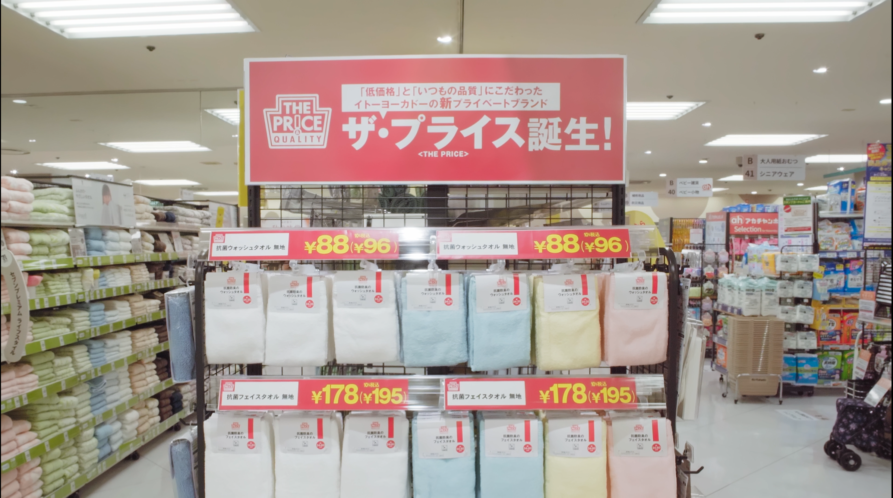 第1に、価格対応の明確化。購入頻度の高いナショナルブランド商品のEDLP化、100円均一商品とイトーヨーカドーの新しいプライベートブランド「ザ・プライス」の投入によって、競合店に対する価格対応力を高める。100円均一商品は売場導入部にコーナー化して訴求していく。