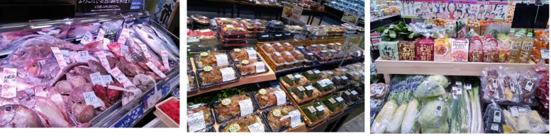 鉄板焼きコーナーでは、地物のカキを使用した「牡蠣入りお好み焼き」や「広島風お好み焼き」を店内で焼いて、でき立てを提供する。惣菜売場では岡山や兵庫の名物「ホルモンうどん」「蒜山風焼きそば」「加古川名物ビーフカツめし」といった店内加工の商品から和惣菜、サラダまでを展開する。