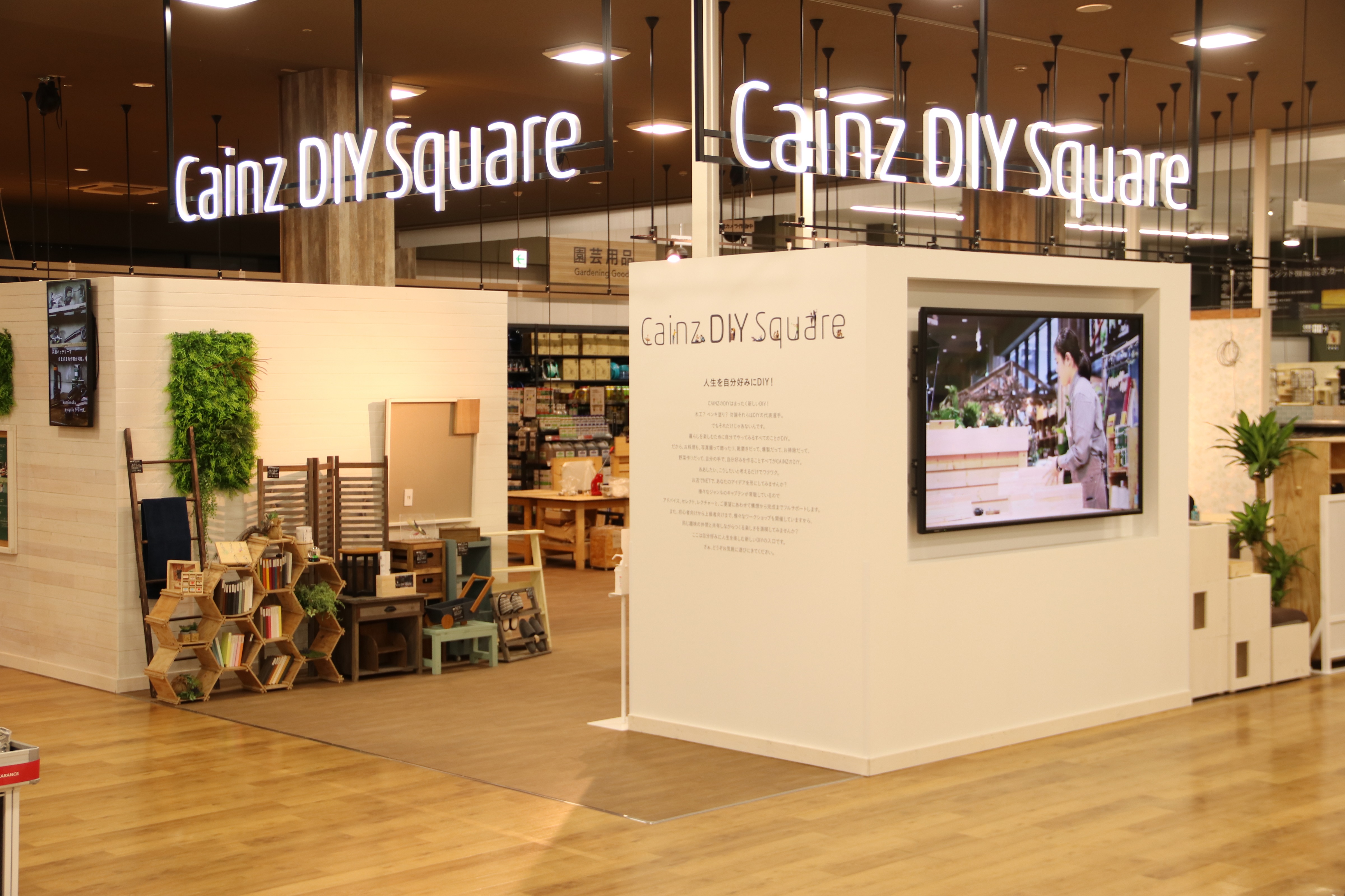 グリーン・ガーデン売場は「CAINZ PARK」として拡大し、新設するインズ直営のテラス席のある「CAFE BRICCO(カフェブリッコ)」と、 室内観葉植物を中心としたインテリアグリーンの売場を併設する。季節やシーンに合わせた最適な「緑のあるくらし」を体感できるコーナーになる。