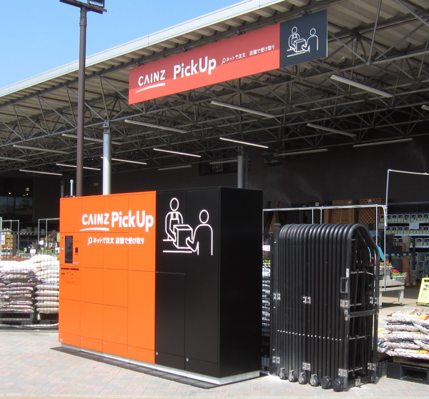 ネット注文品を店舗で受け取ることができるCAINZ PickUpの受け取り専用ロッカーを、 新たに屋外にも設置し、営業時間外の受け取りニーズに対応する。