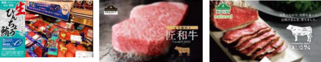 水産部門の三重県産MSC認証生マグロをはじめ、“ちょっと贅沢”を楽しめる食材を展開する。畜産部門では、飛騨牛やイオンが厳選した国内指定農場で育った「トップバリュセレクト 匠和牛」などの国産和牛、オーストラリア・タスマニア島のイオン自社牧場で遺伝子組み換え飼料や成長ホルモン剤、抗生物質を使用せずに育った「トップバリュグリーンアイ タスマニアビーフ」などだ。