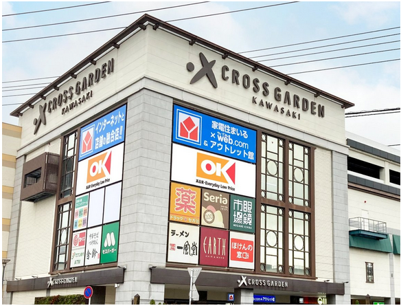 クロスガーデン川崎は、尻手黒川道路沿いの末吉橋付近にあるショッピングモール。ヤマダ電機やセリア、医療モールなど20の専門店が入居している。地下1階、地上4階建てで、延べ床面積は約3万4000㎡。