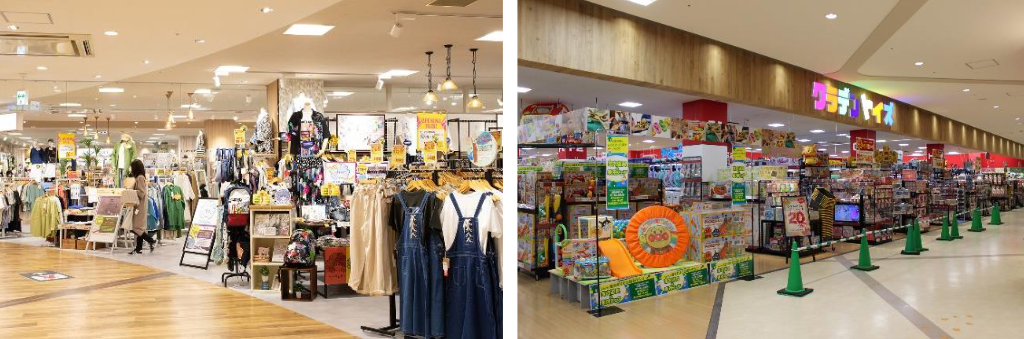2 階は、回遊性を高めるために、直営ゾーンとテナント専門店ゾーンの配置を見直す。そのうえで、衣料と文具・玩具の品揃えを大幅に拡充した直営ゾーンと、テナント専門店ゾーンの世界観を融合させる。直営ゾーンの衣料品売場は、衣料・雑貨を拡充する。レディスファッション売場では、10 代をターゲットにした人気ブランドを新規導入する。またナチュラル系などのテイスト別直営専門店を集積したエリアを設ける。子ども服売場では、キッズ・スポーツブランドはもちろん、学童用品を集めたコーナー「アピタン小学校」を併設する。