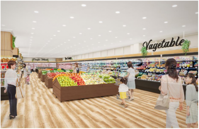 改装では、冷凍食品ケースや要冷ケースを新設し、フローズン・スイーツ、RF1の冷凍食品、植物由来100%の大豆ミート商品、環境に配慮したノントレー商品など新店で好評な新しい商品を導入する。また、生鮮食品のフローズン売場を拡大し、長期保存、簡便商品、大型商品も導入する。さらに、「美味しい物」「産直・地産地消」「時短・簡便」の新規MD・商品を導入する。