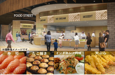 オープンキッチンでライブ感あふれるデリカ売場では「日本食の大衆化」をコンセプトに、大人気の寿司をはじめ、天ぷら、唐揚げ、お好み焼き、たこ焼きなどでき立ての惣菜約300品目を展開する。また、対面方式による量り売りのインドネシア料理と日本式カレーを導入する。惣菜売場の横には気軽にその場で喫食できる座席を用意した。