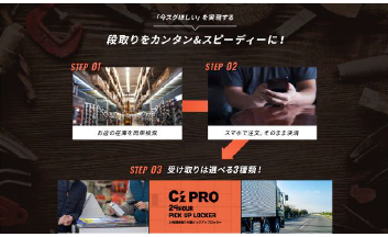 会員に登録すると、会員専用アプリ「C’z GO!」から、店舗の全商品をリアルタイムに検索し、購入することができる。また、商品の受け取り方法も選択できる。1つ目は、営業時間内に店頭での受け取り(取り置き)。2つ目は、店外に設置した24時間受取可能の「ピックアップロッカー」に預けて受け取る。3つ目は有料で、店舗から5㎞までの現場に直接配送する。
