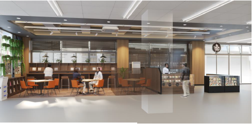 店内に、会員専用のスペース「クリエイティブ・スペース」を設ける。各種カタログや資材サンプルなどを揃え、検討・注文できる「カタログスペース」や、ゲストを呼んで商談に使うこともできる「商談スペース」、仕事の合間に休憩できる「休憩スペース」などを提供する。無料Wi-Fiや携帯の充電器、コピー/プリンター(有料)を揃え、フリードリンクも用意する。会員が自分の事務所のように自由に使えるスペースだ。