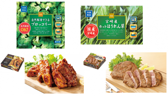 フローズンコーナーでは、人気の冷凍食品売場を拡大。ベイシアブランドの冷凍野菜や、バックリブ・ポークステーキなどの本格的な食卓商品、人気の輸入ピザや有名店の冷凍ピザを導入するなど、品揃えを充実させる。